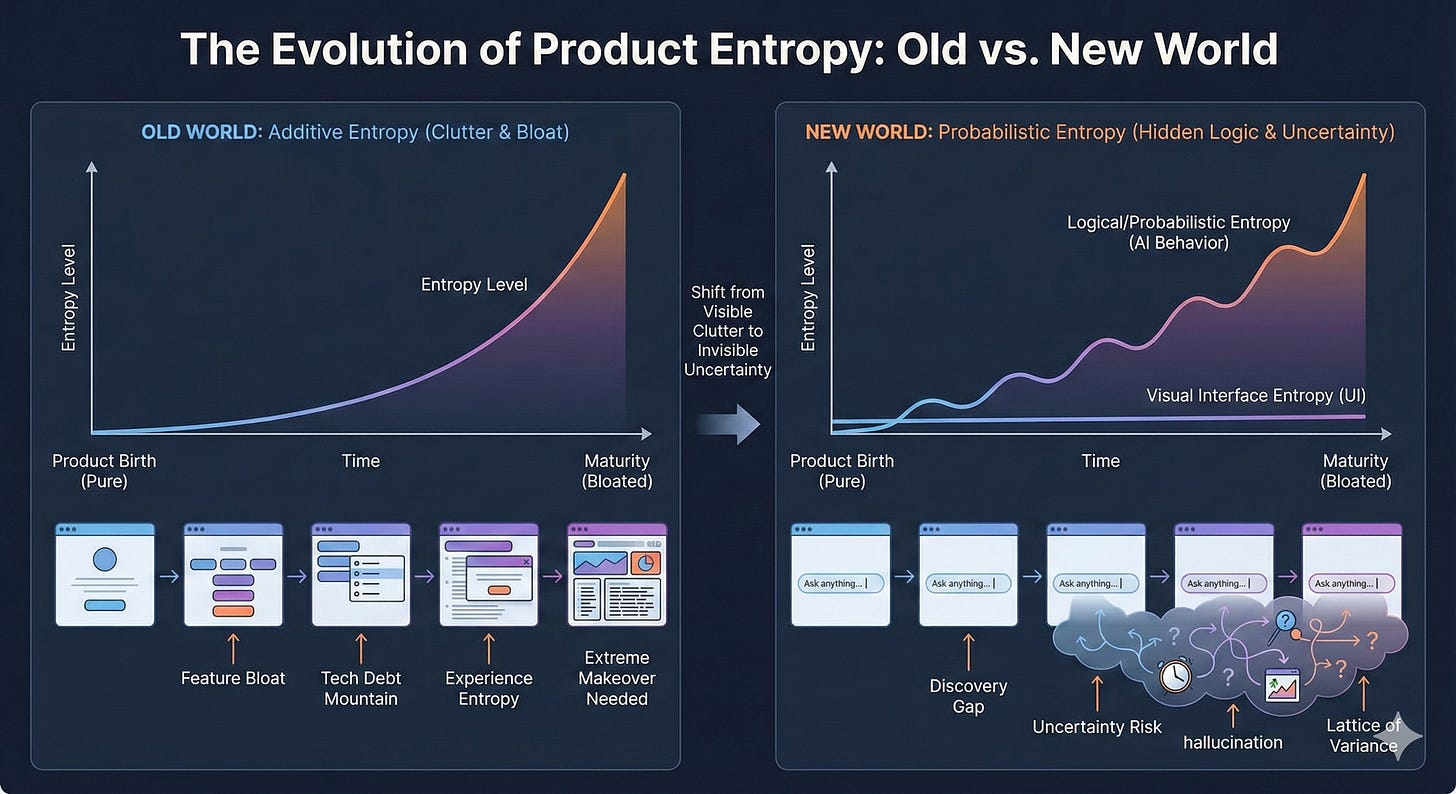 Why the "cleanest" AI interfaces are often the hardest to use. A deep dive into Product Entropy, the Discovery Gap, and the transition from managing Flow to managing Constraints.